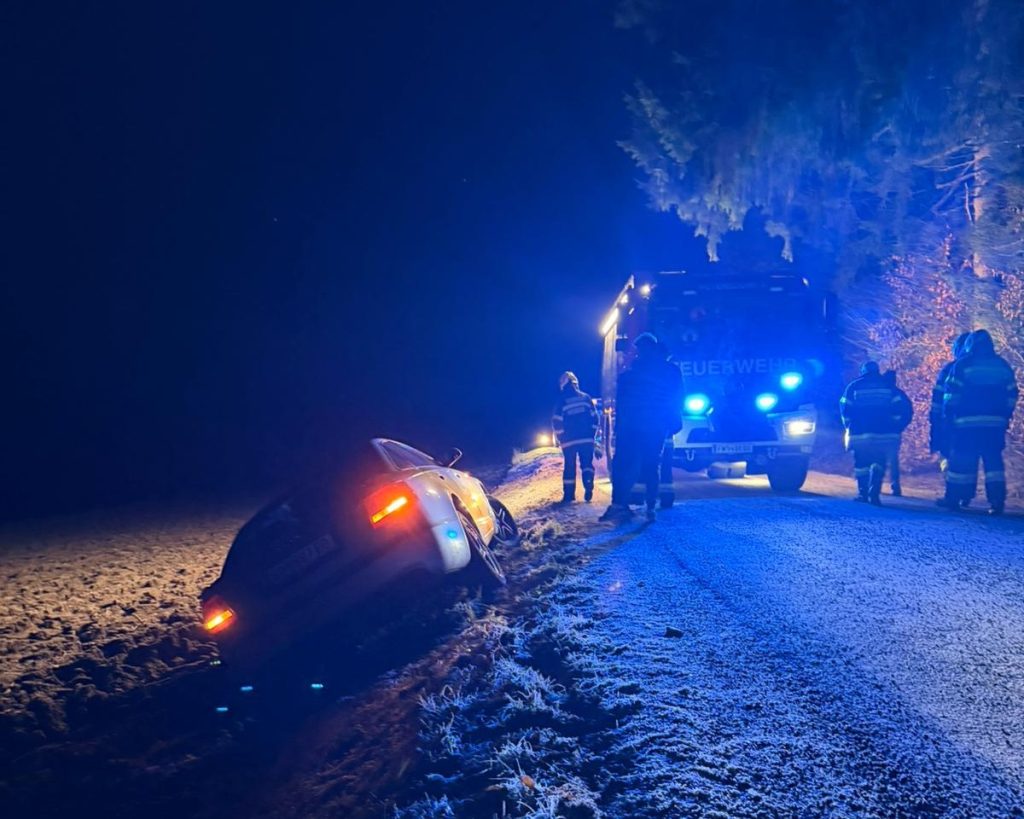 Nach telefonischer Alarmierung durch den Streudienst und folgendem stillen Alarm rückte eine Einsatzgruppe zur Bergung eines verunfallten PKWs im Ortsteil Lamm aus. Nach Erkundung der Einsatzstelle und Absicherung des Straßenabschnitts wurde die Bergung des PKWs durch den Kran des ÖAMTC organisiert. Im Einsatz standen HLF2 3000, MZFA und 8 Mann.